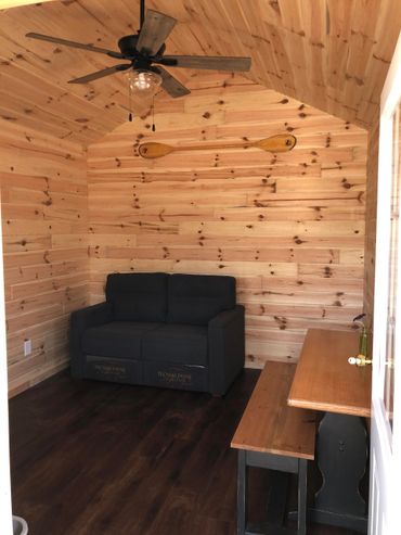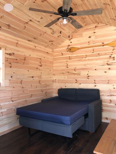 Includes: Air conditioning, microwave, toaster oven, coffee pot, mini refrigerator, grill, picnic table and fire ring. Bed/fold out couch dimensions are 4' wide x 6' long.