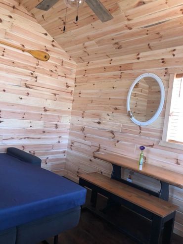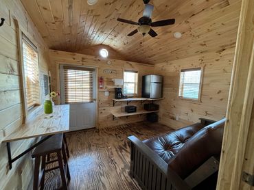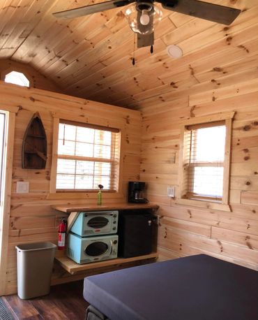 "We stayed for two nights in the cabin. It's such a cute cabin with everything we needed! It was very clean. The mini fridge and microwave were so handy. We used the ceiling and table fans. It felt very private and was quiet. The staff is super friendly and available, the store has a variety of items and we loved the slushies!" - Karen